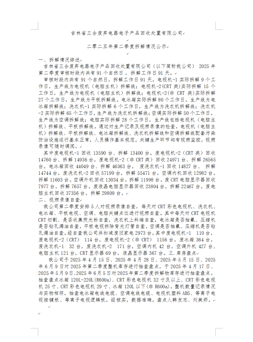 吉林省三合废弃电器电子产品回收处置有限公司 吉ICP备13000238号