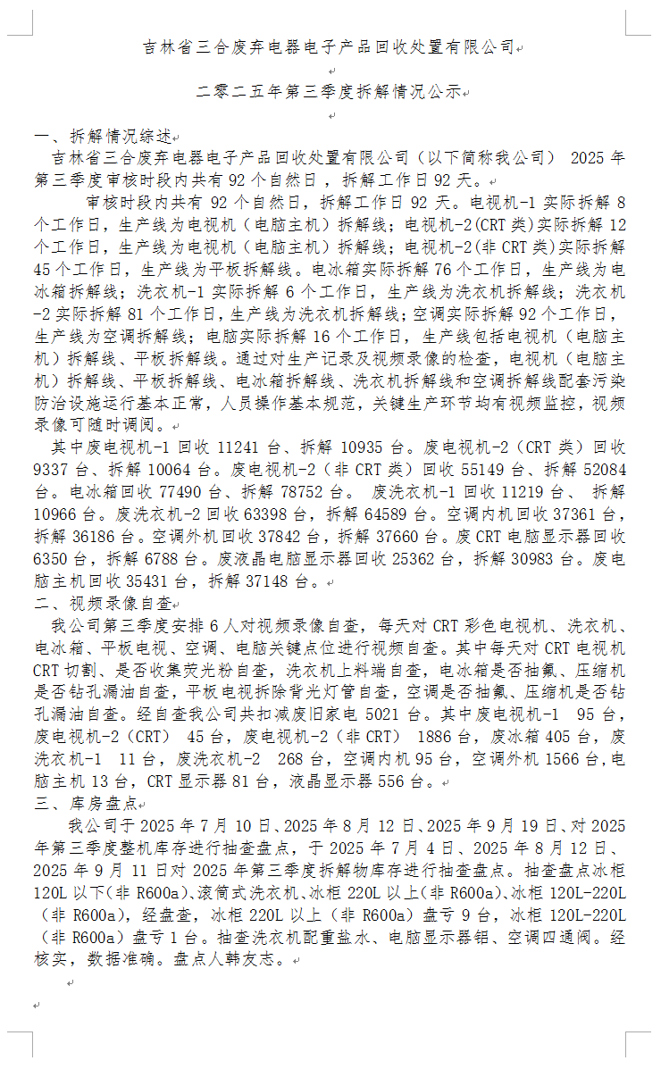 吉林省三合废弃电器电子产品回收处置有限公司 吉ICP备13000238号